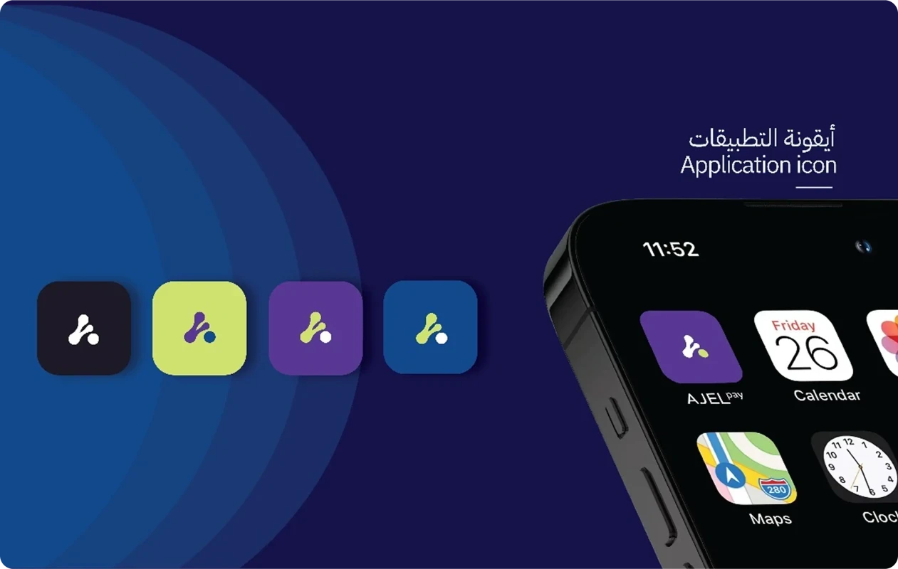 The Ajel Pay logo is inspired by the idea of connection between the four key parties in the system, where each element represents a fundamental pillar in the installment or deferred payment process. The logo reflects an integrated vision highlighting smoothness, trust, and collaboration among all parties involved in the commercial process.
