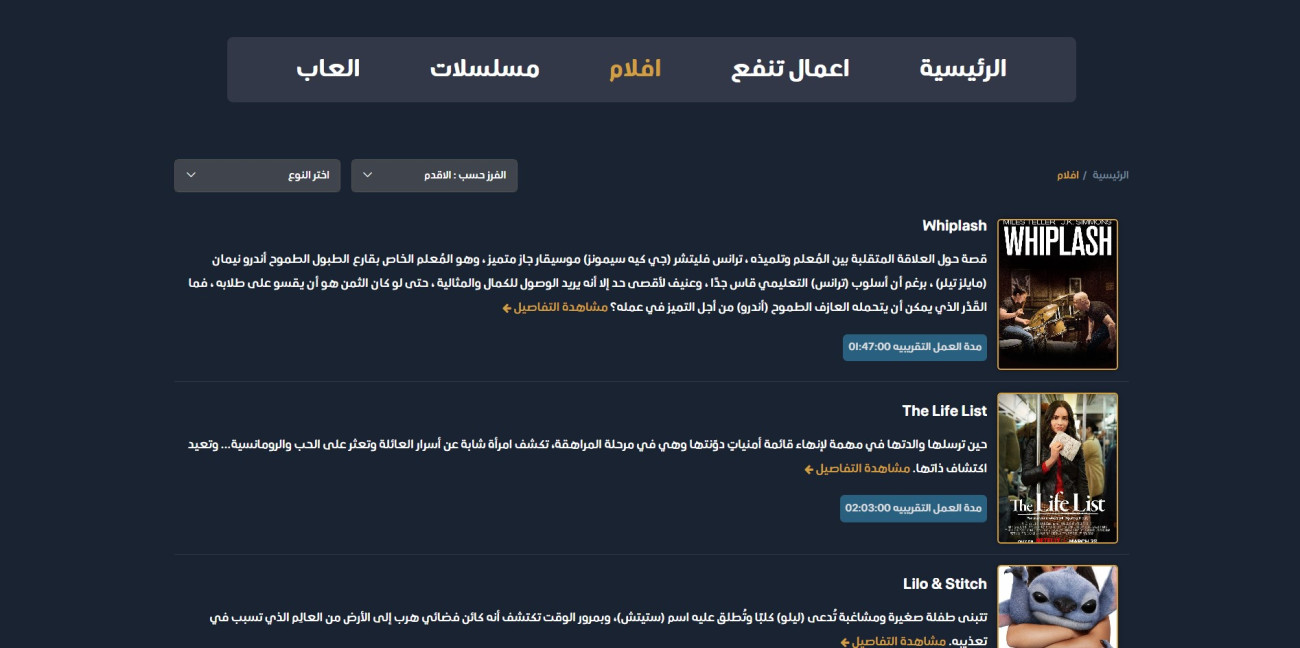 The page for each movie, series, or game contains:
